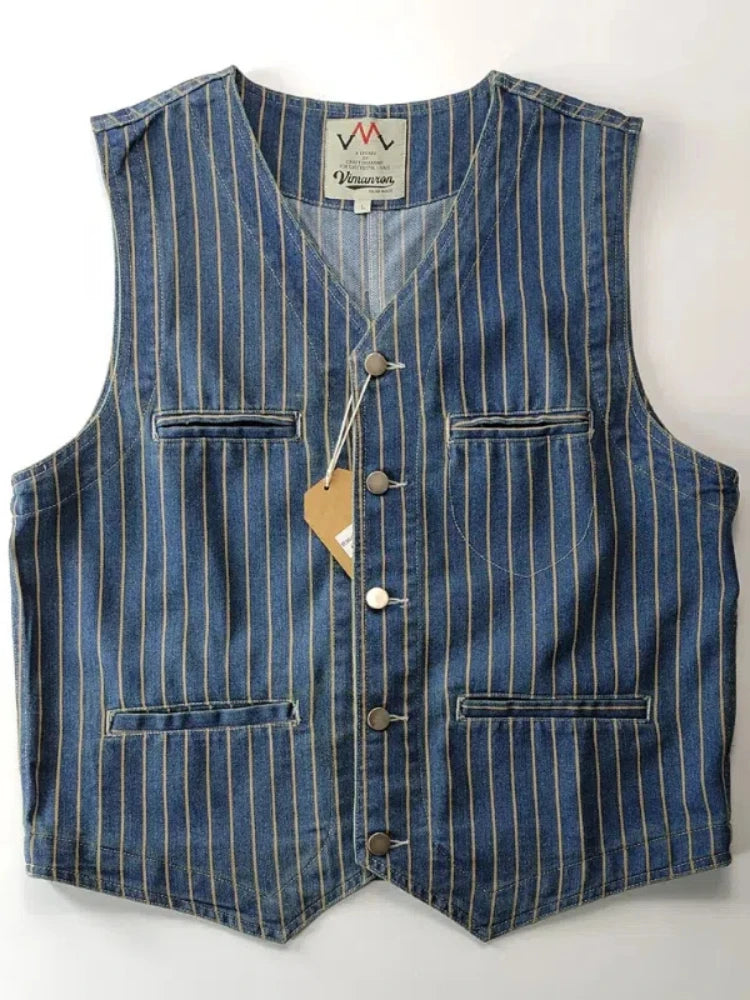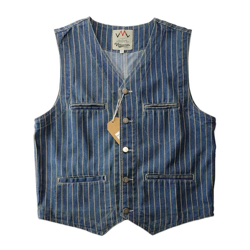 Designed to elevate both casual and formal looks, the Verona Vest blends the rugged texture of denim with the precision of tailored design.